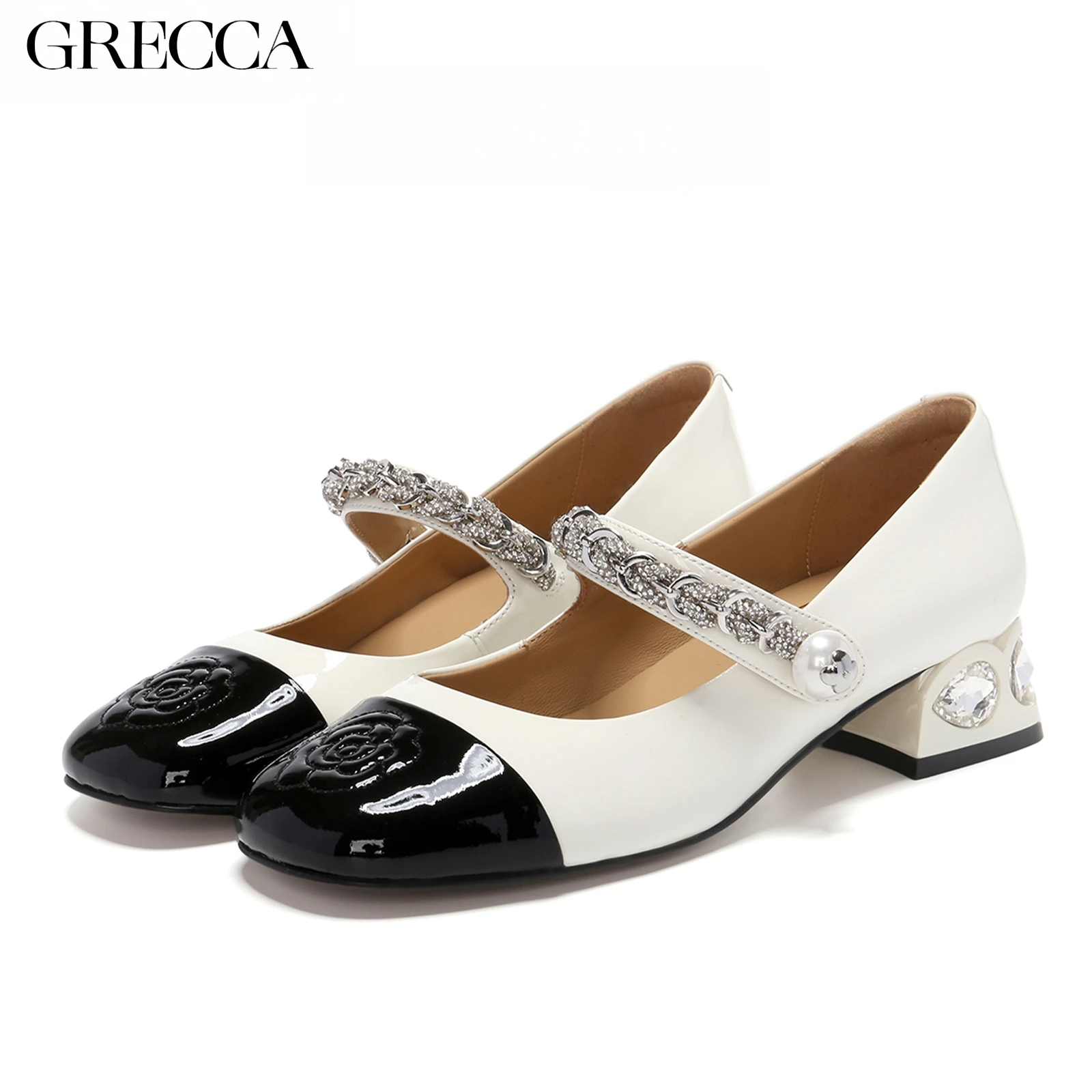 New Styles Ladies Fashion Light Weight Mary Jane Pumps Breathable Comfort Square Toe High Heels Rhinestones Stones Genuine